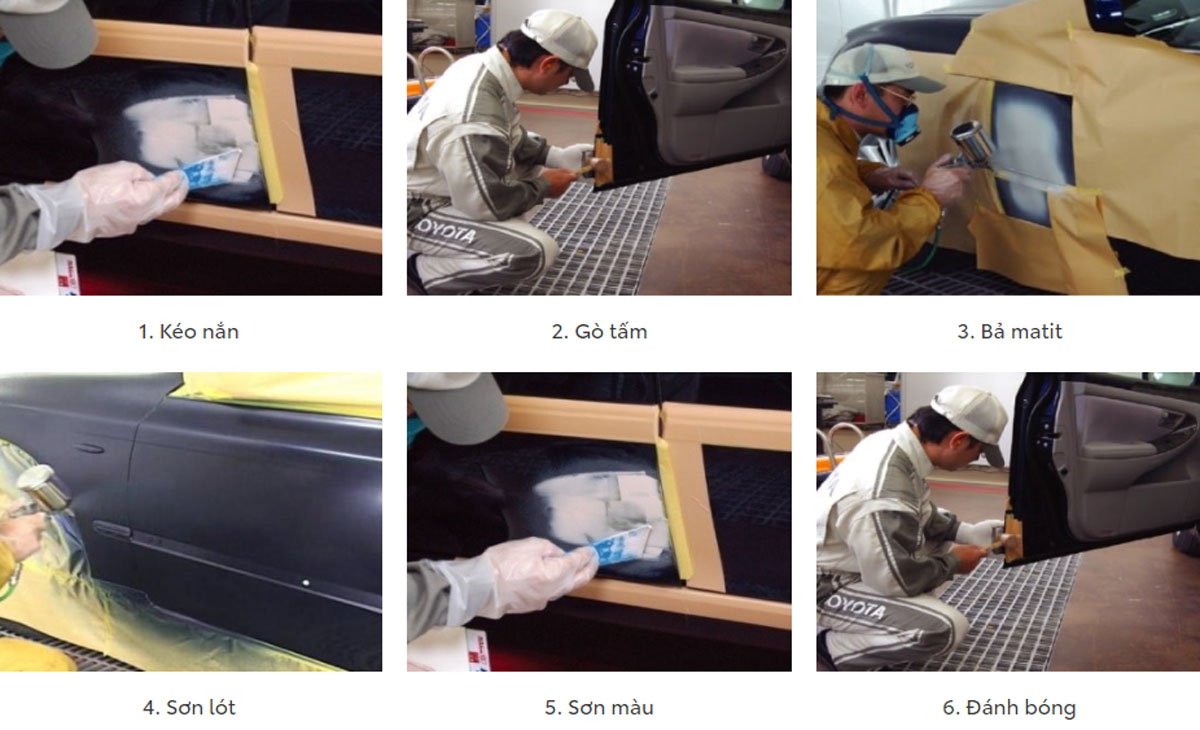 Ngoài ra, nhằm đảm bảo chất lượng và rút ngắn thời gian sửa chữa, chúng tôi xây dựng và áp dụng quy trình quản lý chất lượng trong từng công đoạn, quy trình sửa chữa vết xước trong 4 giờ…để không ngừng đem đến sự hài lòng cho khách hàng đối với dịch vụ sửa chữa Thân xe và Sơn của Toyota. Để được tư vấn chi tiết về nội dung sừa chữa, xin liên hệ với các Đại lý chính hãng của Toyota Việt Nam trên toàn quốc.