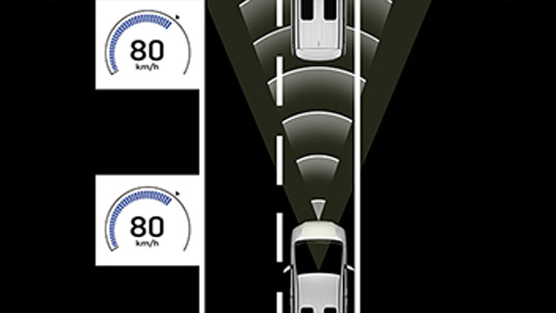 Hệ thống sử dụng radar gắn dưới lưới tản nhiệt phía trước cùng với camera để phát hiện các phương tiện phía trước, đồng thời tự động điều chỉnh tốc độ để đảm báo khoảng cách an toàn với các phương tiện đang lưu thông.