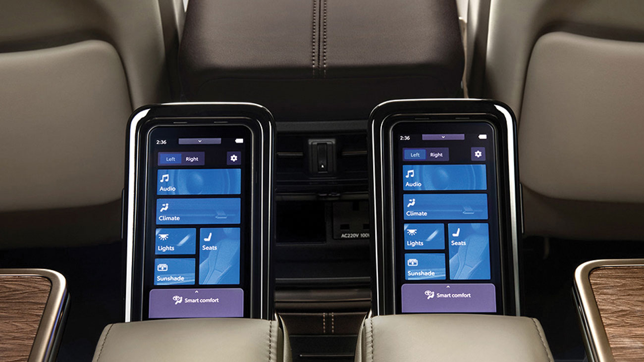 Được trang bị ở 2 vị trí hàng ghế thứ hai (ghế thương gia) giúp khách hàng dễ dàng điều khiển các tiện nghi xung quanh mình chỉ thông qua một màn hình.