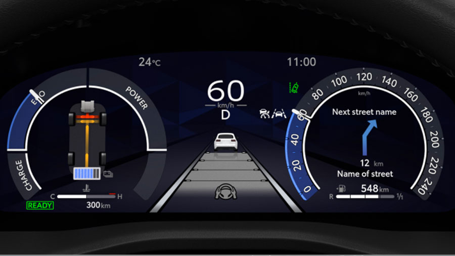 Bảng đồng hồ 12.3″ sắc nét cùng hệ thống hiển thị thông tin trên kính lái giúp khách hàng dễ dàng theo dõi, đồng thời tăng thêm vẻ sang trọng và tiện nghi của không gian nội thất.