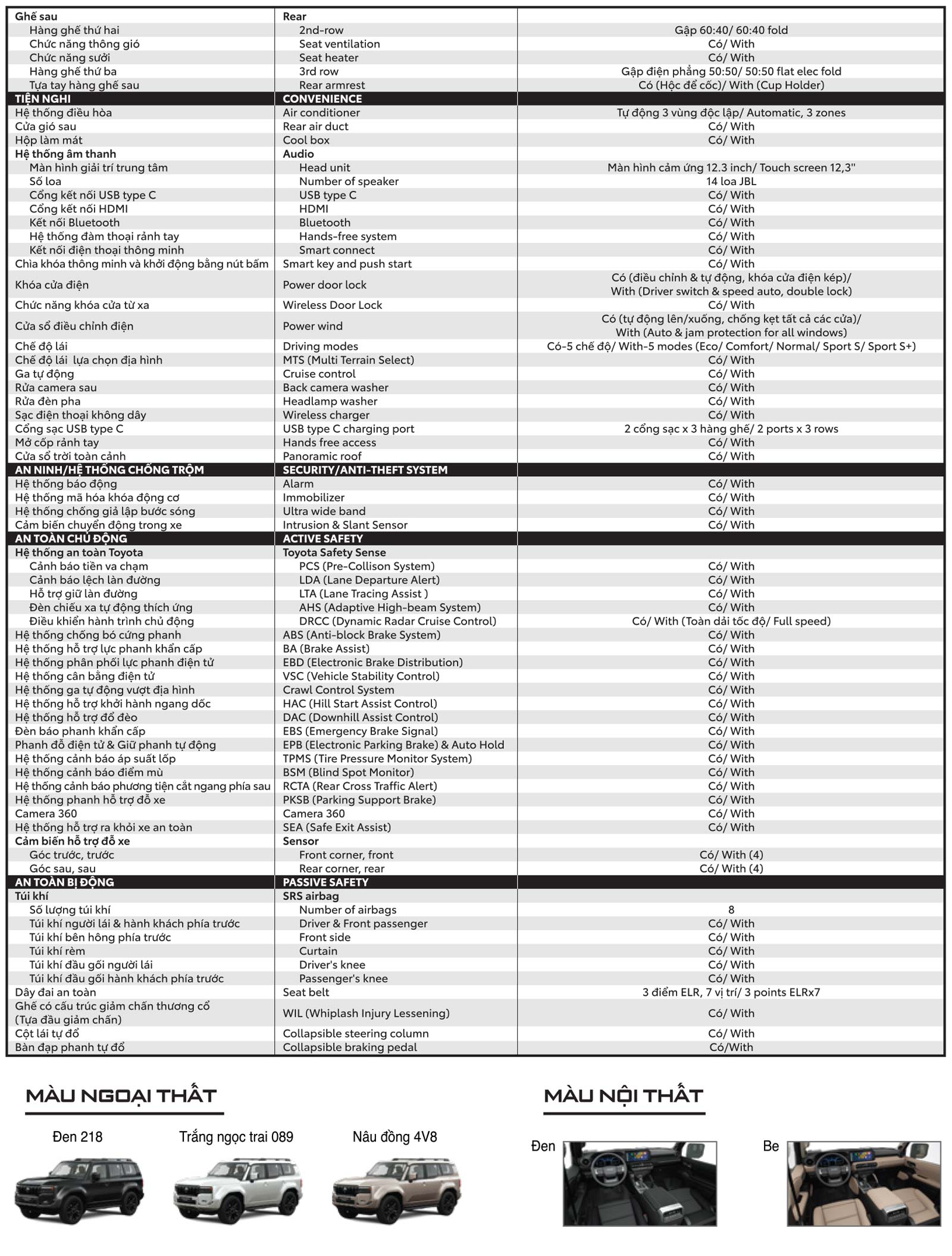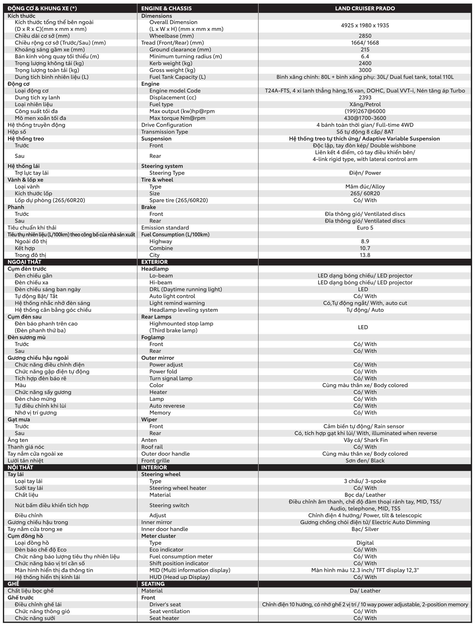 Bảng thông số kỹ thuật chi tiết xe Toyota Land Cruiser Prado Mới.