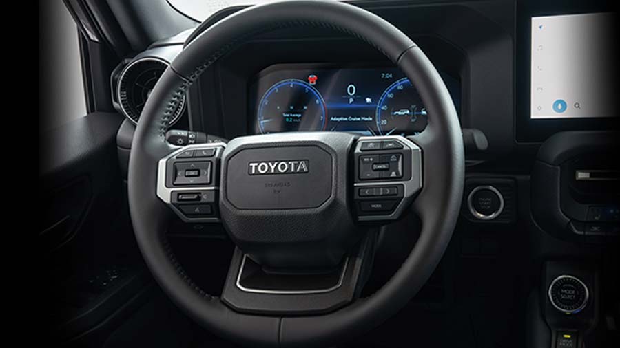 Vô lăng hiện đại với 3 chấu, bọc da và tính năng chỉnh điện 4 hướng, sưởi vô lăng. Các nút bấm tích hợp điều chỉnh âm thanh, điều khiển màn hình trung tâm, tính năng TSS giúp khách hàng dễ dàng thao tác, lái xe thuận tiện hơn.